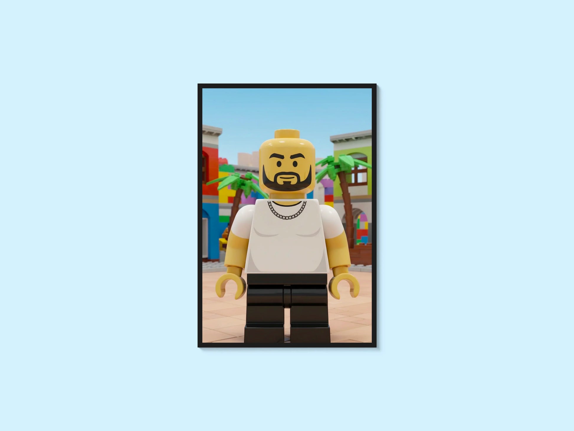Affiche Briques Fun (LEGO) — Portrait en briques, univers coloré et ludique.